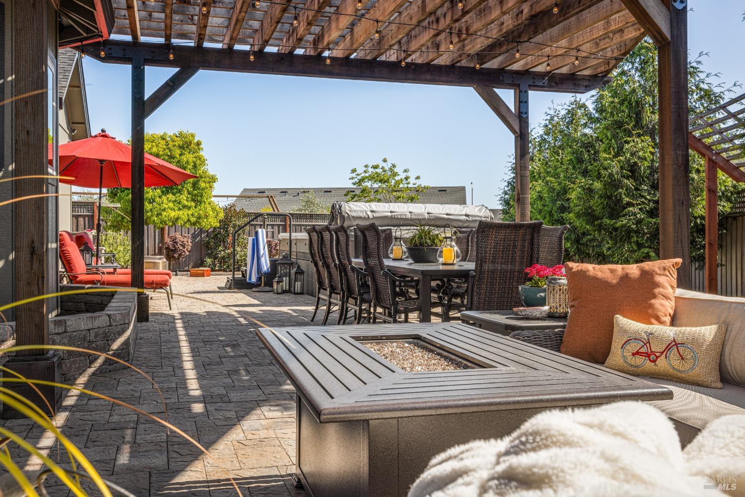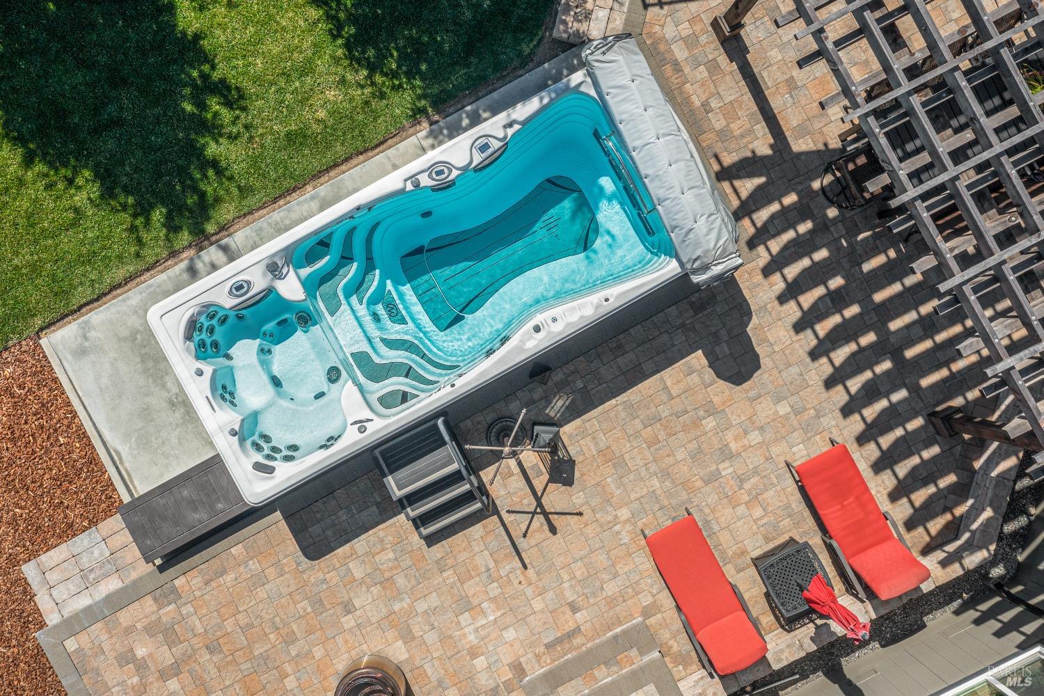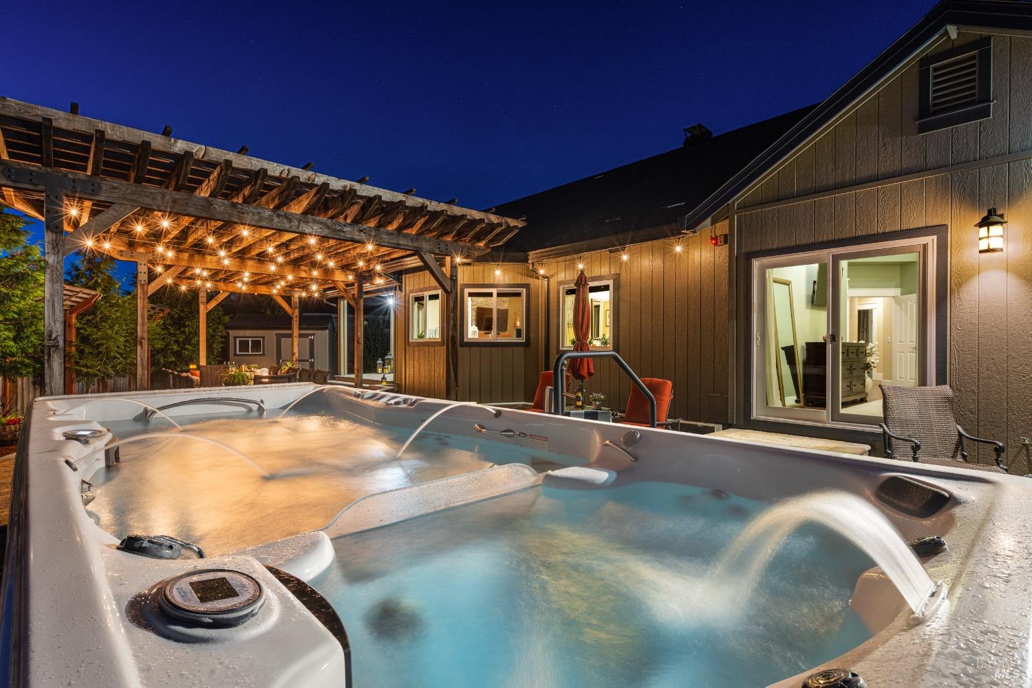 A stunning Wine Country Oasis, seamlessly blending indoor-outdoor living. Step through the folding rear door to a picturesque backyard surrounded by Cedar, Camphor, Laurel and Magnolias. Relax beneath the covered patio while enjoying a glass of your favorite varietal. Immerse yourself in the spa or cool off in the pool. Inside, entertain family and friends in the centerpiece kitchen featuring top end appliances and stunning granite-topped island. There is room to spare with four bedrooms including the ample primary which opens to the backyard just steps away from the spa. In the great room, watch a favorite movie, enjoy the ambiance of the fireplace or enjoy your latest book in the reading nook. The pristine three-car garage is ready for any enthusiast's hobby or projects, and features epoxy-coated floor and high-end cabinetry. This luxurious stunner is a rare find you will not want to miss!