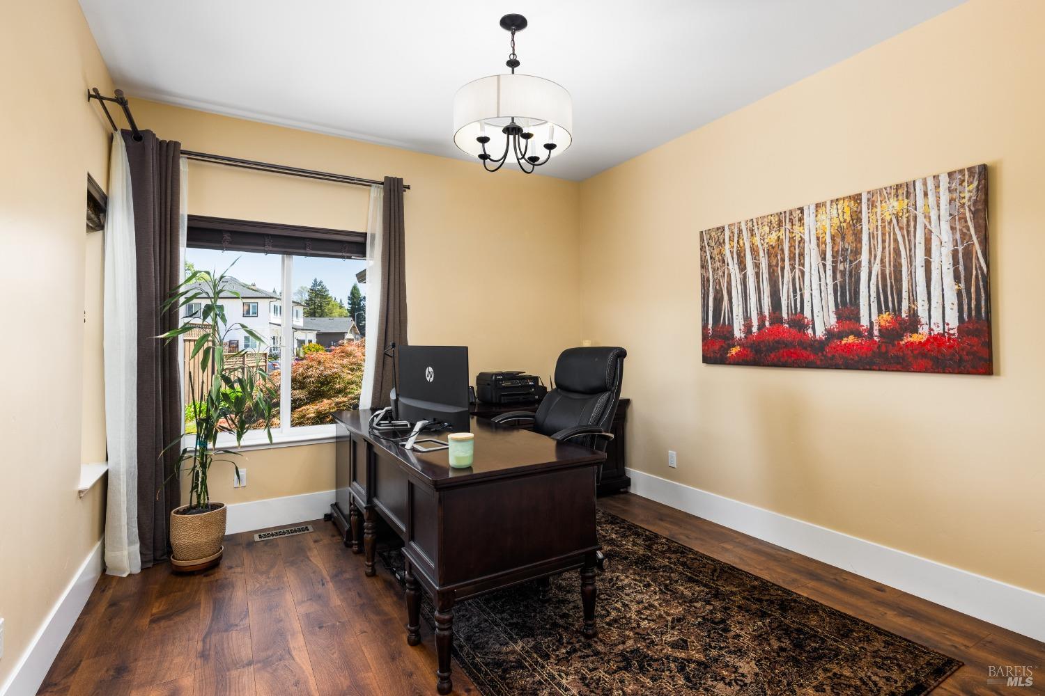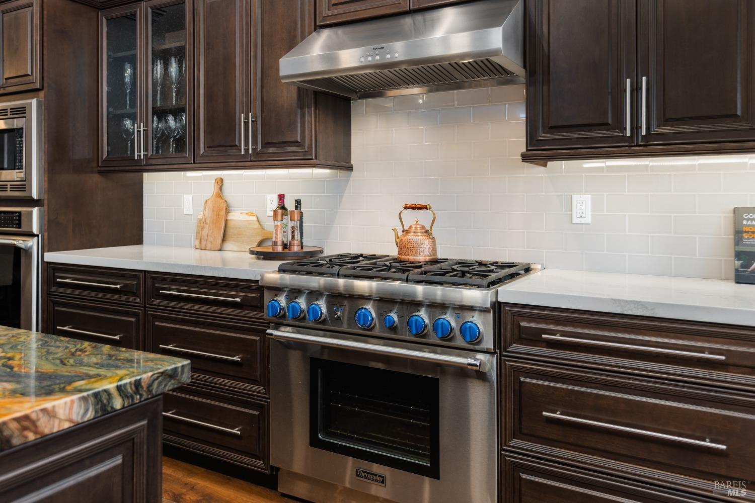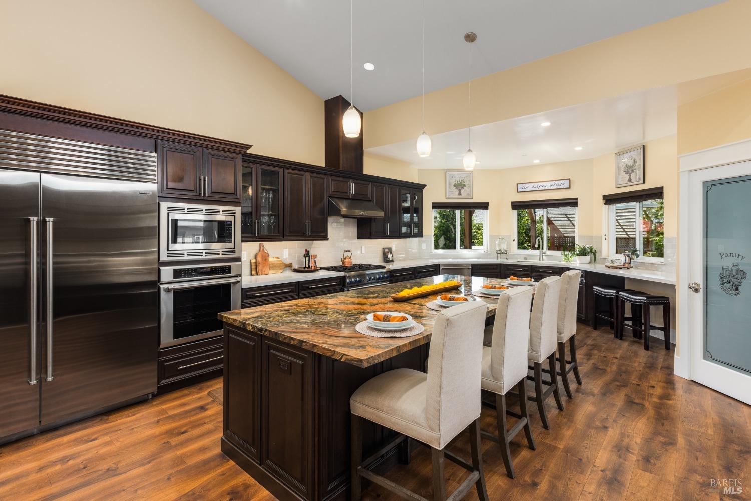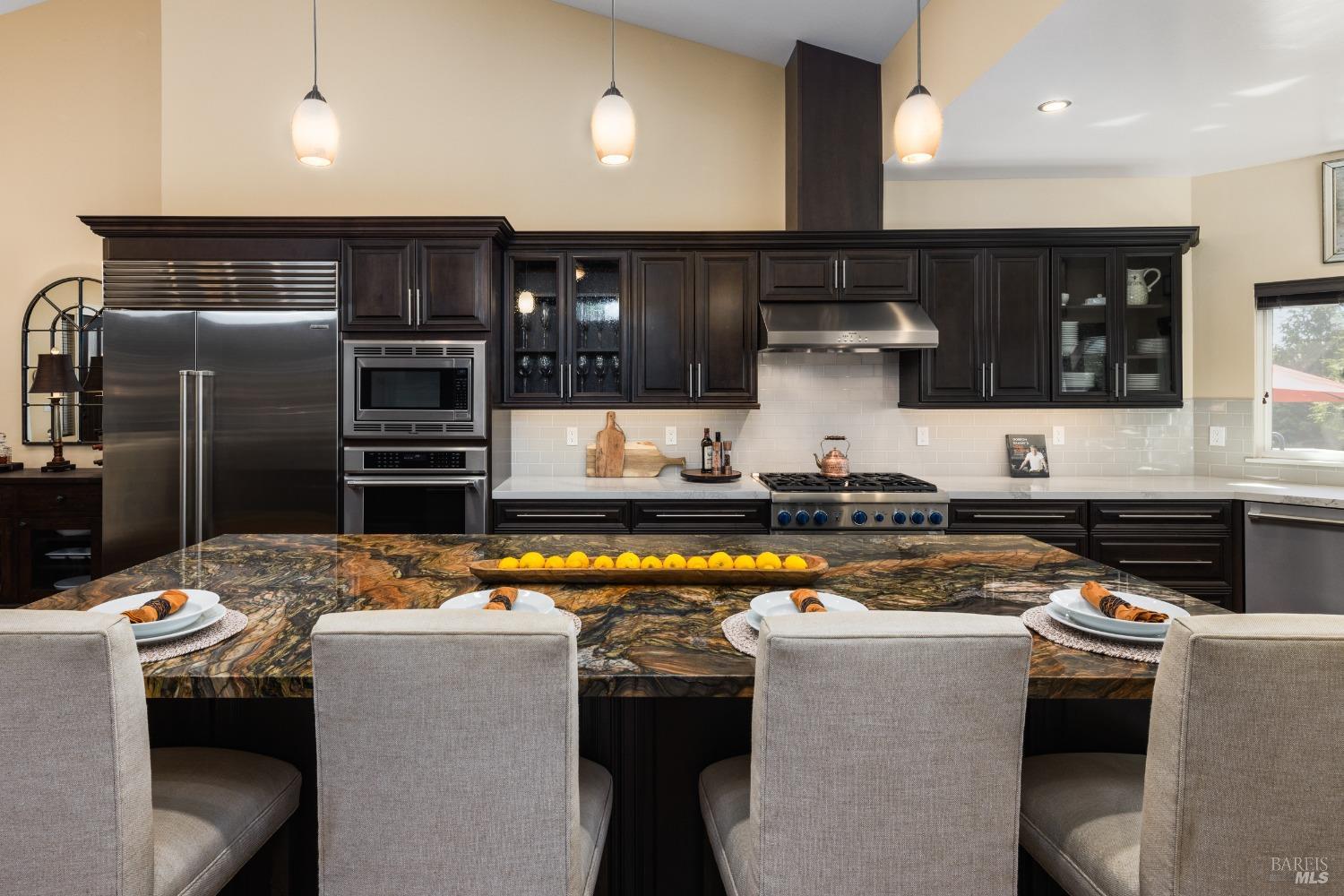 A stunning Wine Country Oasis, seamlessly blending indoor-outdoor living. Step through the folding rear door to a picturesque backyard surrounded by Cedar, Camphor, Laurel and Magnolias. Relax beneath the covered patio while enjoying a glass of your favorite varietal. Immerse yourself in the spa or cool off in the pool. Inside, entertain family and friends in the centerpiece kitchen featuring top end appliances and stunning granite-topped island. There is room to spare with four bedrooms including the ample primary which opens to the backyard just steps away from the spa. In the great room, watch a favorite movie, enjoy the ambiance of the fireplace or enjoy your latest book in the reading nook. The pristine three-car garage is ready for any enthusiast's hobby or projects, and features epoxy-coated floor and high-end cabinetry. This luxurious stunner is a rare find you will not want to miss!