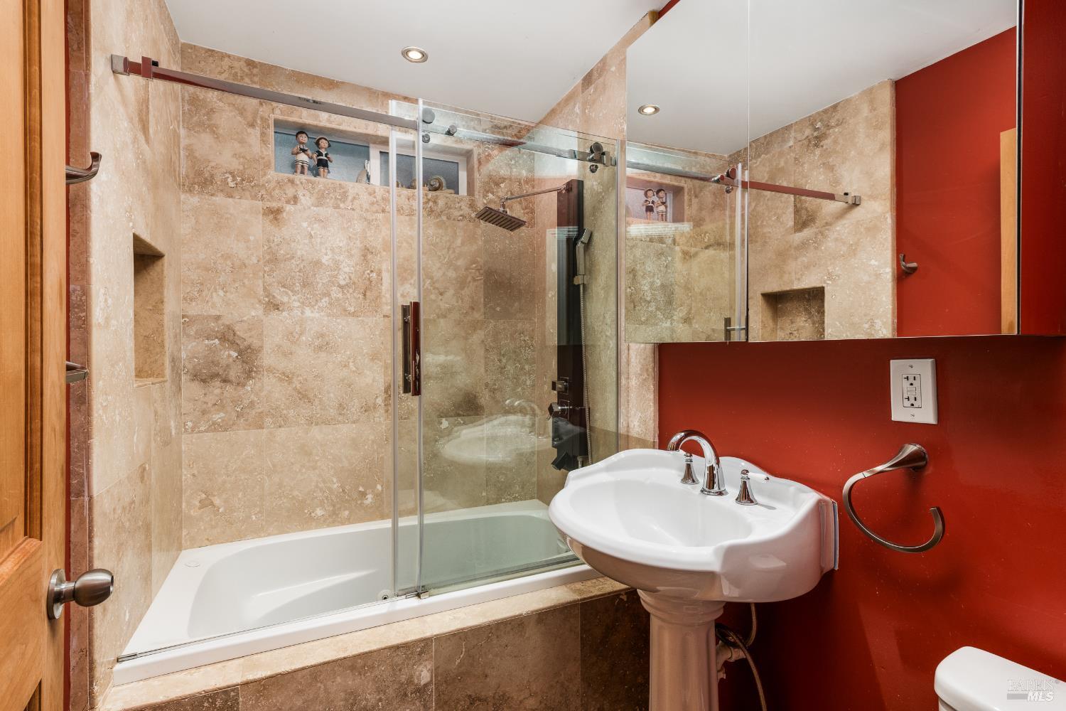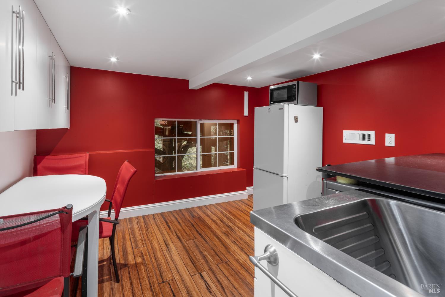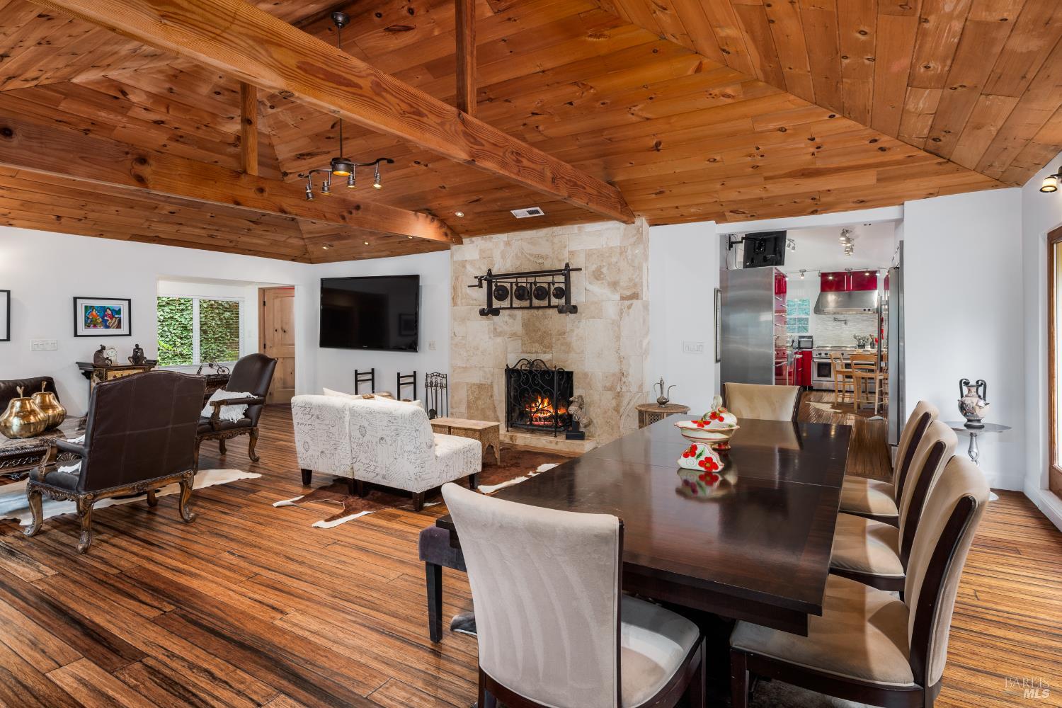 Beautifully updated and tranquil, this four-bedroom, three-and-a-half-bath retreat sits just steps from downtown Occidentalyet feels worlds away. Tucked amid towering redwoods beside a peaceful year-round creek, the property offers the quintessential Sonoma Wine Country lifestyle: serene, nature-framed living and proximity to artisan shops, acclaimed cafes, and the vibrant creative spirit that defines this beloved Bohemian enclave. Breathtaking views of forest and sky surround the residence, with expansive wraparound decks on both the upper and lower levels creating seamless indoor-outdoor living. Hardwood floors flow throughout, complemented by soaring vaulted open-beam wood ceilings and a cozy wood-burning fireplace, bringing warmth, natural light, and rustic sophistication to each room. The modern kitchencomplete with stainless steel appliancesopens through wide sliding glass doors to the decks, allowing the beauty of the outdoors to spill gracefully inside. Thoughtful updates and finishes elevate the home while preserving its inviting, organic character. Designed for exceptional versatility, the property offers two distinct living spaces: a 2-bedroom, 1.5-bath haven upstairs and a 2-bedroom, 2-bath retreat below. Enjoy the home as one spacious residence or use it as independent quartersperfect for multi-generational living, guests, or private workspaces. Beyond the doorstep lies the best of the region. Just minutes away you'll find the iconic Russian River for kayaking, swimming, paddling, and forest hikes; vineyard-lined country roads leading to world-class wineries in Freestone, Graton, and Sebastopol; and a culinary landscape that spans from Occidental's historic dining institutions to boutique tasting menus and farm-driven eateries. And within a scenic 20-minute drive, the windswept cliffs, beaches, and oyster shacks of Bodega Bay and the Sonoma Coast await. Offering privacy, beauty, convenience, and the magic of redwoods, river, and coastthis is Wine Country living at its most enchanting.